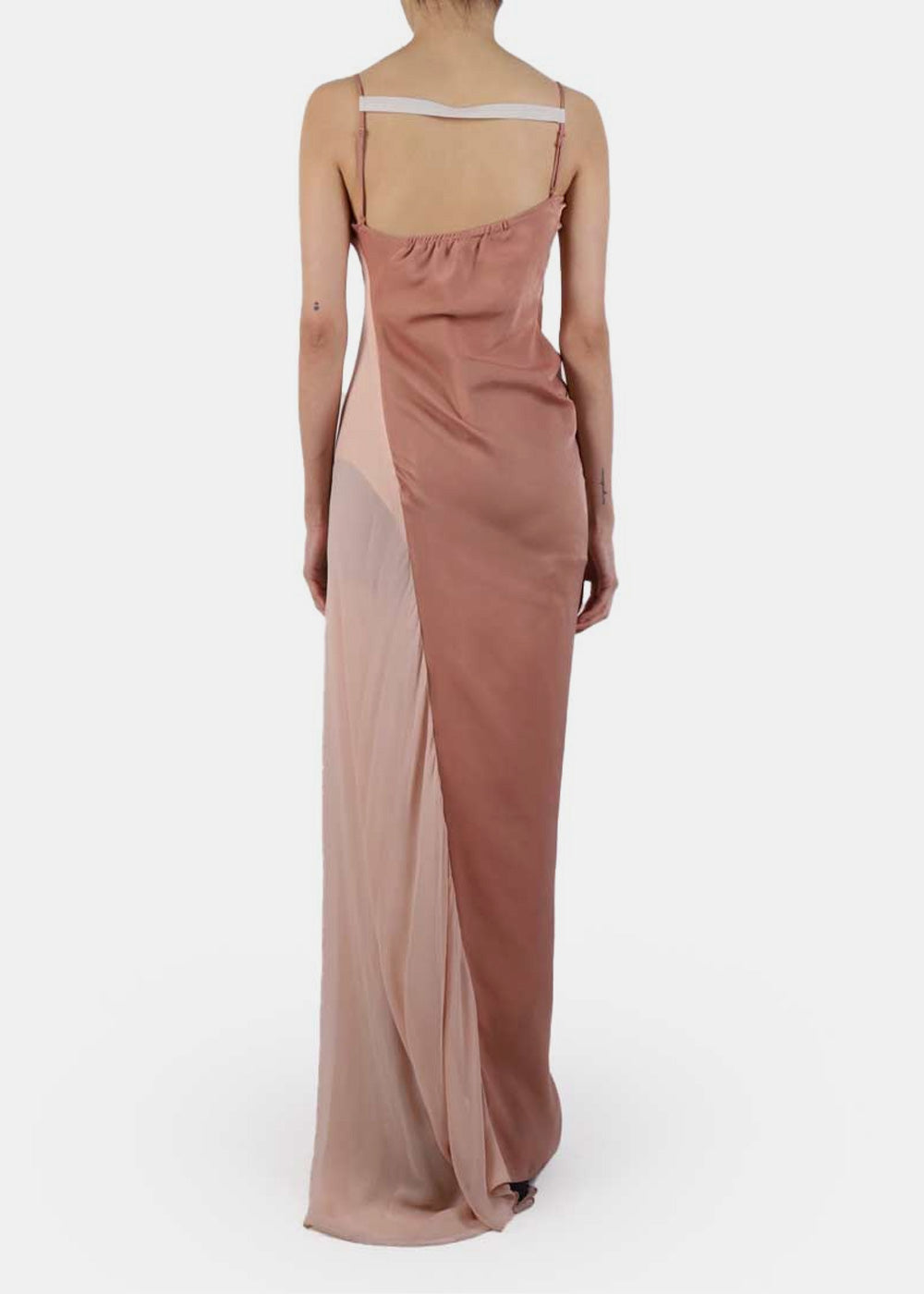Polyester chiffon paneled slip long dress in pink.