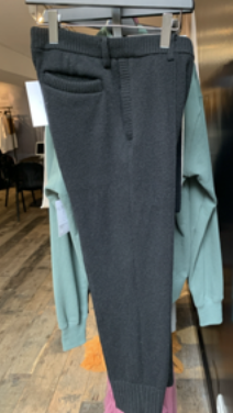 Panelled sweatpants in black knit and woolen fabric. Slash pockets at waist. Belt loops. Two welt pockets at back. Hook-and-eye closure and zip fly at front. Slim fit.
