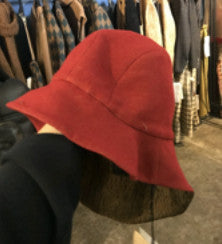 Asymmetrical wool blend helia hat in red and mustard. Lined.