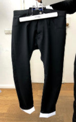 Pants in black laminated wool. Button closure and zip fly. Reflective cuff. Panelling throughout. Relaxed fit.