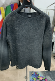 Long-sleeved sweater in dark grey and silver featuring black and silver studs and strass at front. Boat neck collar.