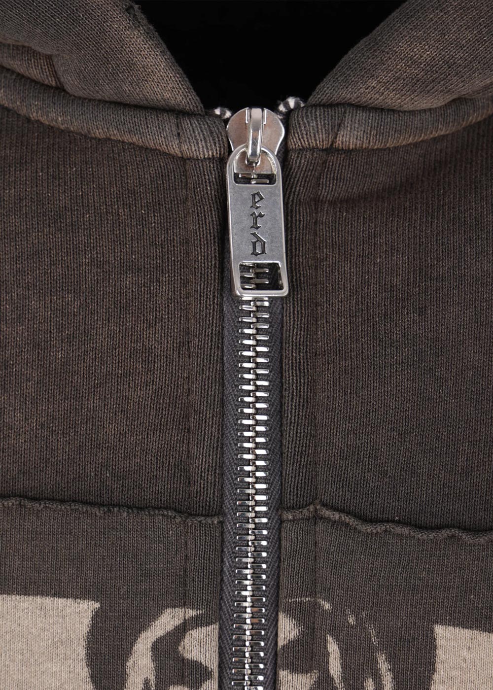 Graphic-print zip-up hoodie in black.