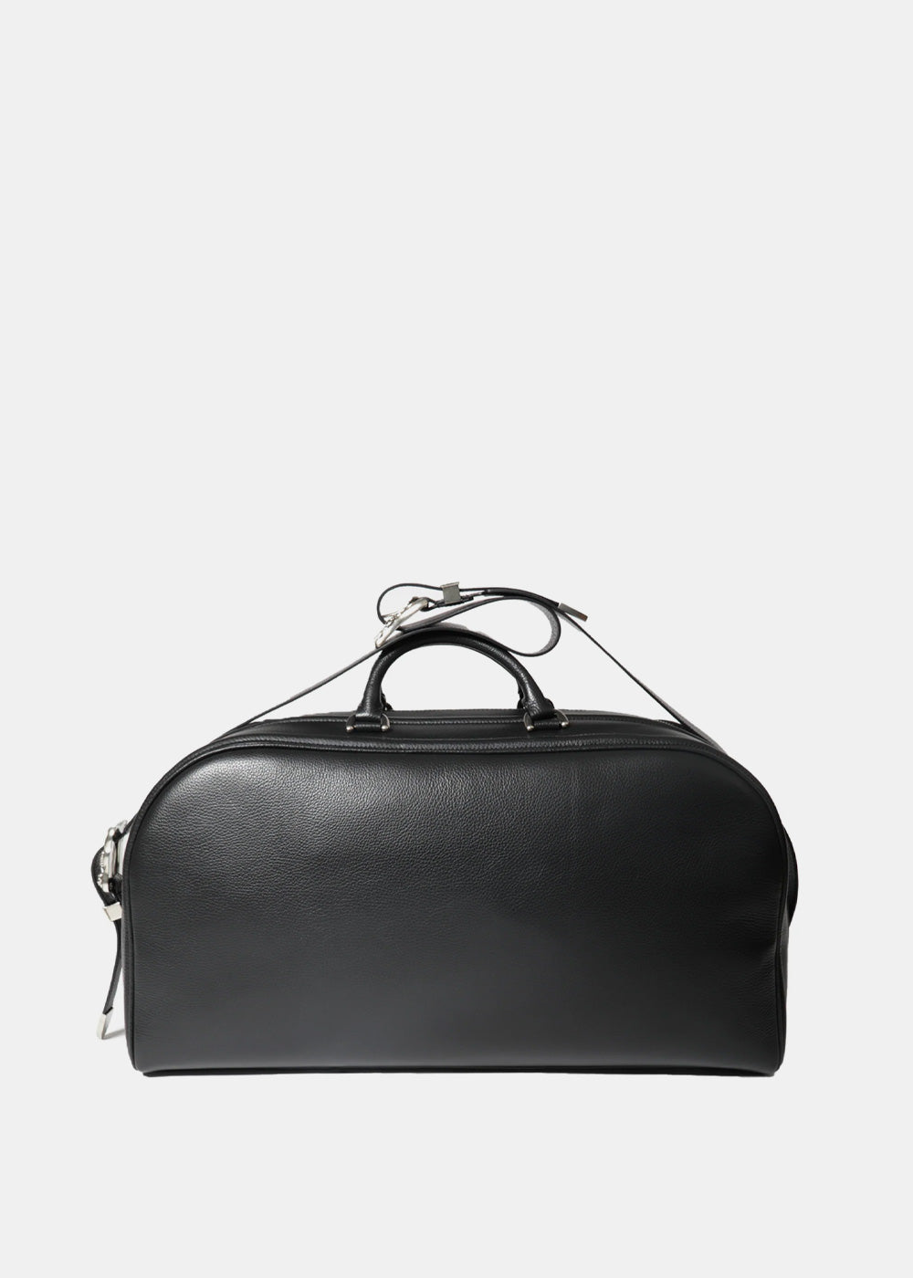 Weekender buckle-detailed leather bag in black.