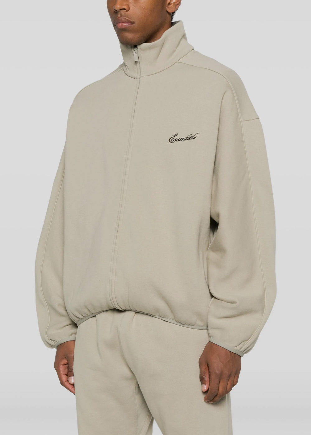 Cotton fleece track jacket in concrete abbey stone.