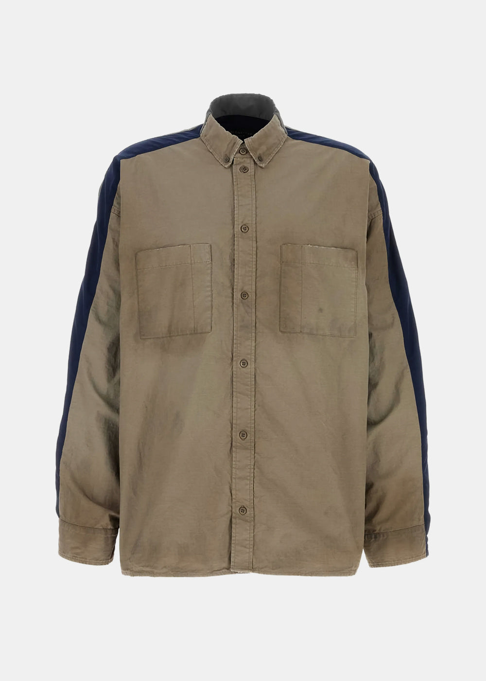 Washed cotton ripstop tracksuit shirt in dark beige.