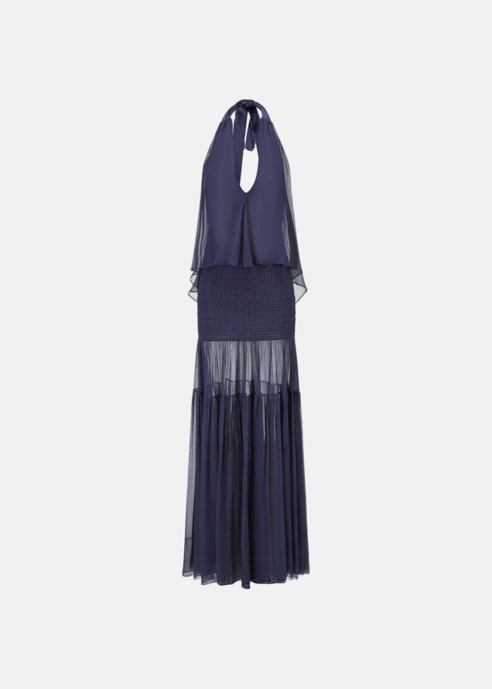 Navy Shirred Tiered Silk Maxi Dress Navy Shirred Tiered Silk Maxi Dress