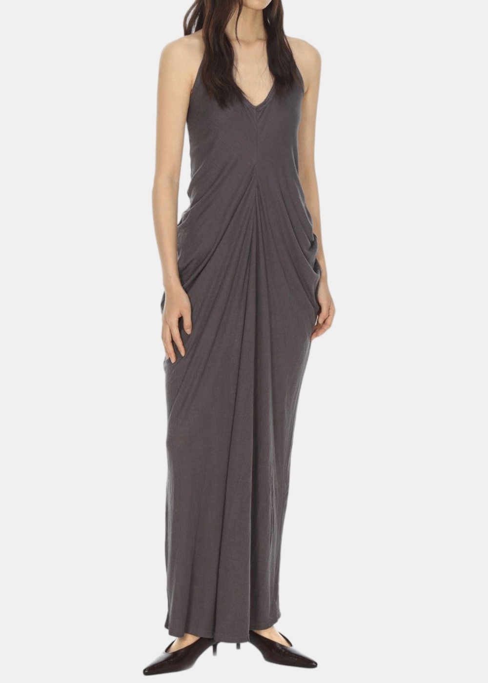 Dark Grey V-Neck Draped Vest Maxi Dress