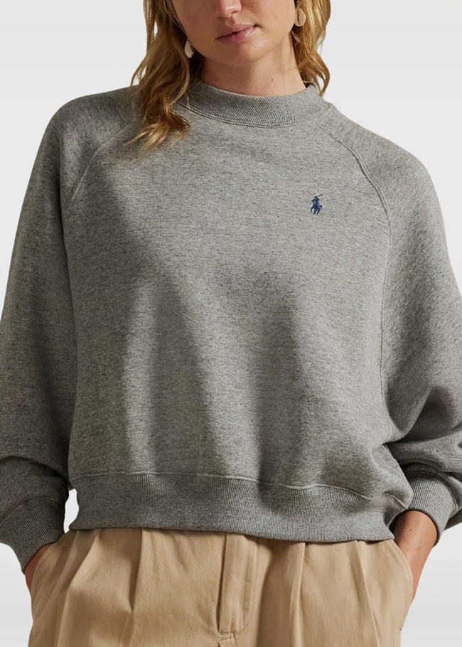 Grey Raglan-Sleeve Crew-Neck Sweatshirt