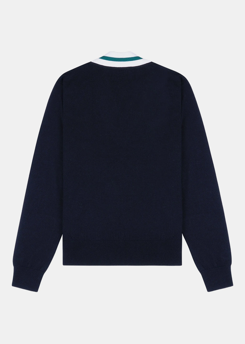 Merino wool v neck sweater in dark navy.