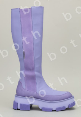 Knee-high calfskin Platform boots in violet. Round toe. Tonal elastic gusset at sides. Calfskin pull-loop at collar. Tonal buffed calfskin lining. Textured tonal rubber midsole and outsole. Approx. 6.5 cm heel.