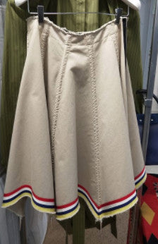 Skirt in 'flax' beige. Raw edge waist with zip side closure. Paneled with 10 points decorated with metal spikes. Multicolor banding at hem.