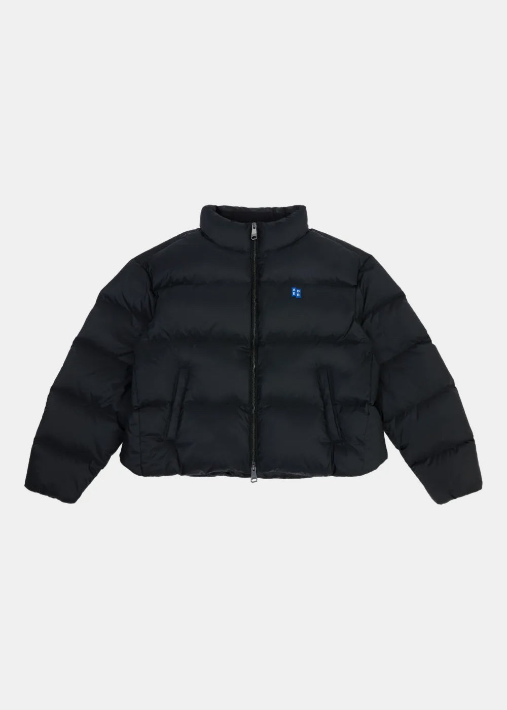 Zip-up padded jacket in black.