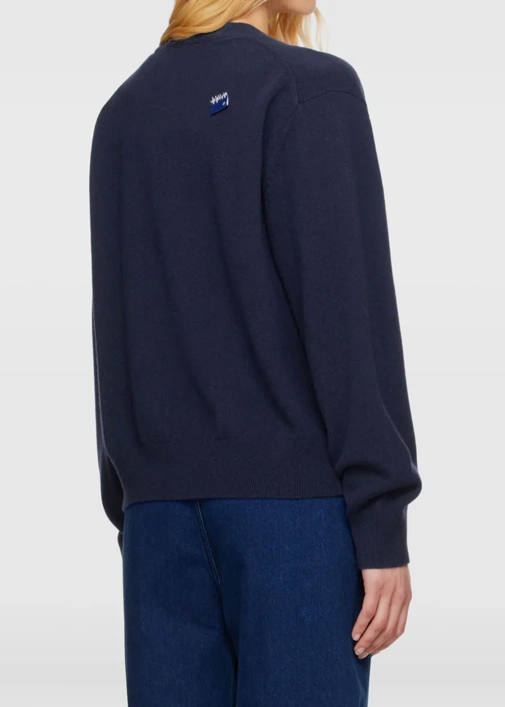 Blue Button-Fastening Logo-Detail Cardigan