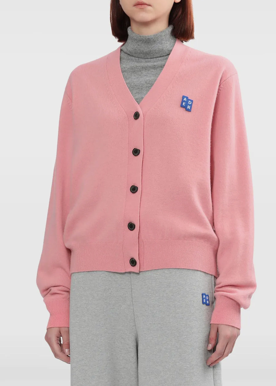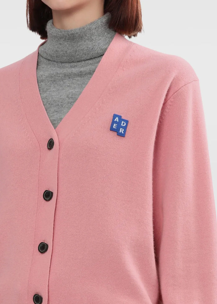 Logo-appliqué cardigan in rose pink.