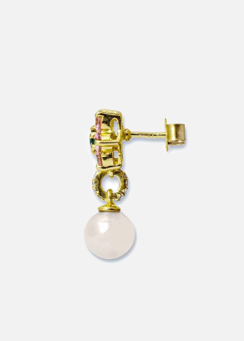 Pink & green flower freshwater pearl earring pair in silver-tone/white
