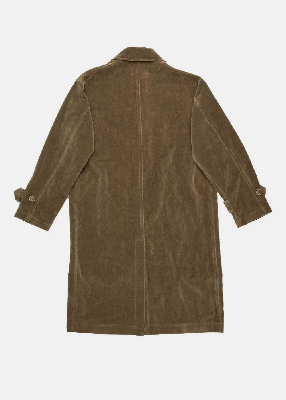Mustard/Gold Buttoned Jacquard Velvet Long Coat