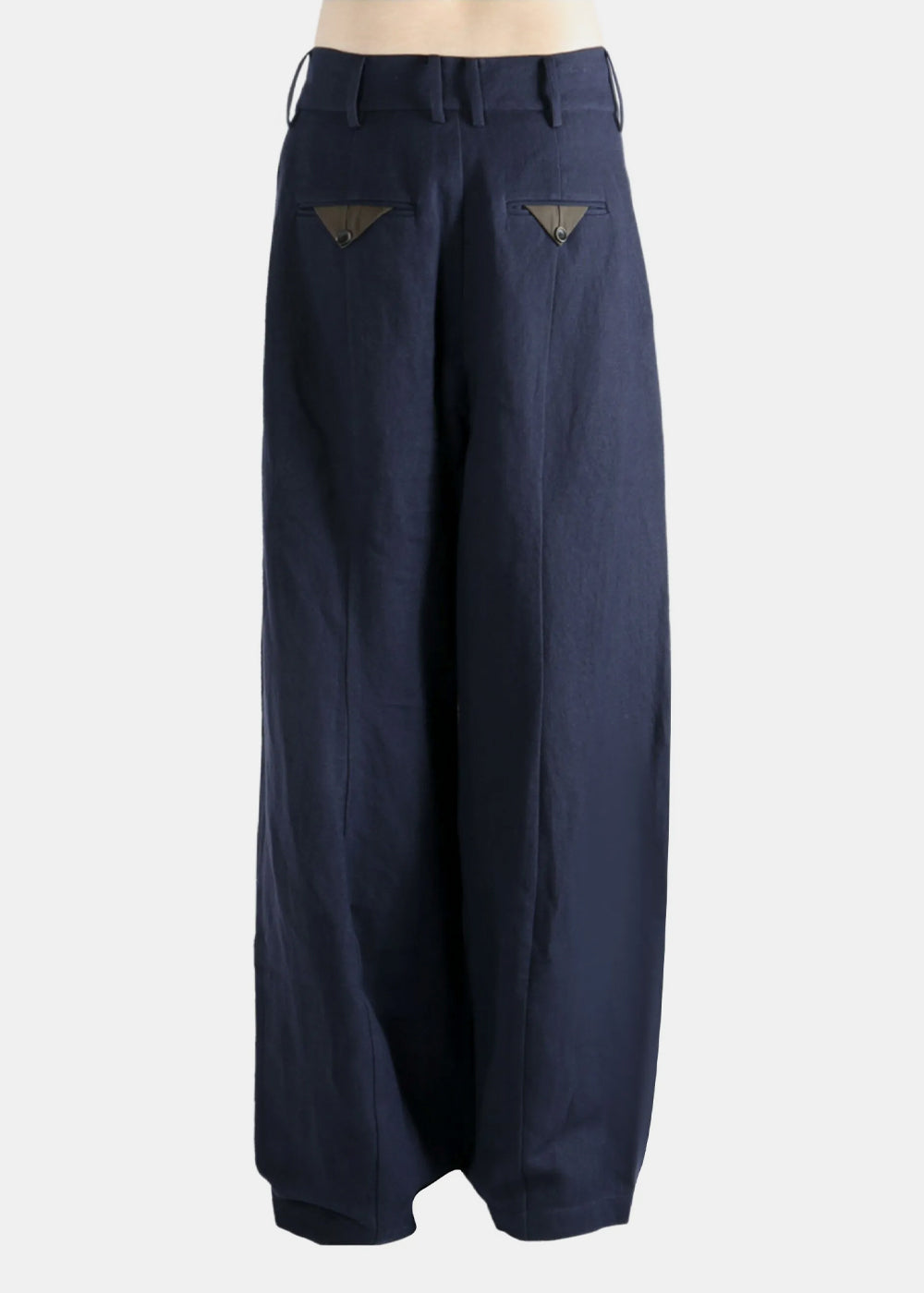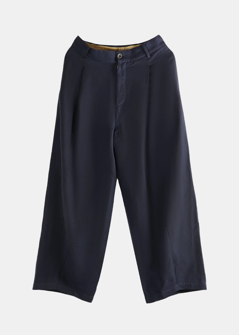 Linen-virgin wool blend pants in dark blue.