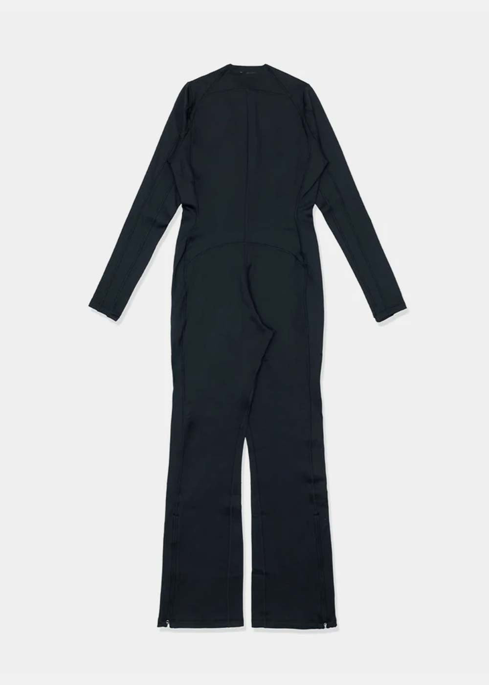Dark Navy Serif Logo Silk Pique Aline Skirt