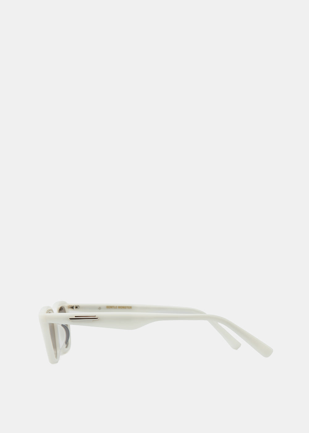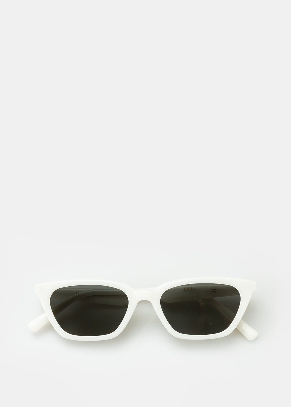Reflecting the brand’s love for unusual forms, Gentle Monster presents these sunglasses in their SS22 collection. Crafted from white acetate, these sunglasses feature a structured cat-eye frame and are finished with 100% UV protected black tinted lenses.