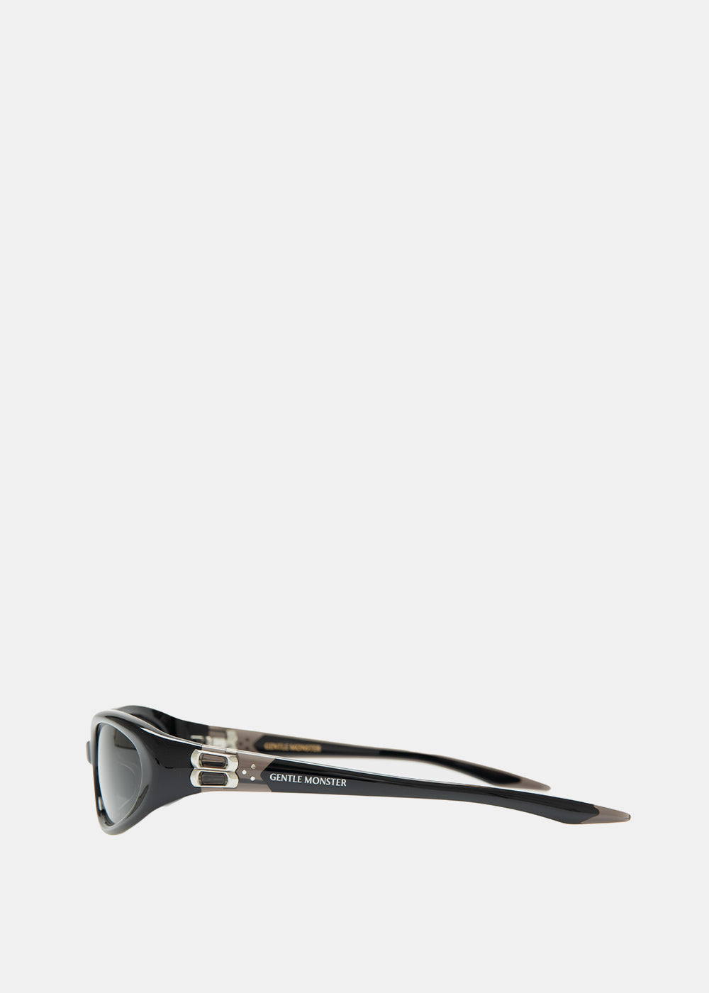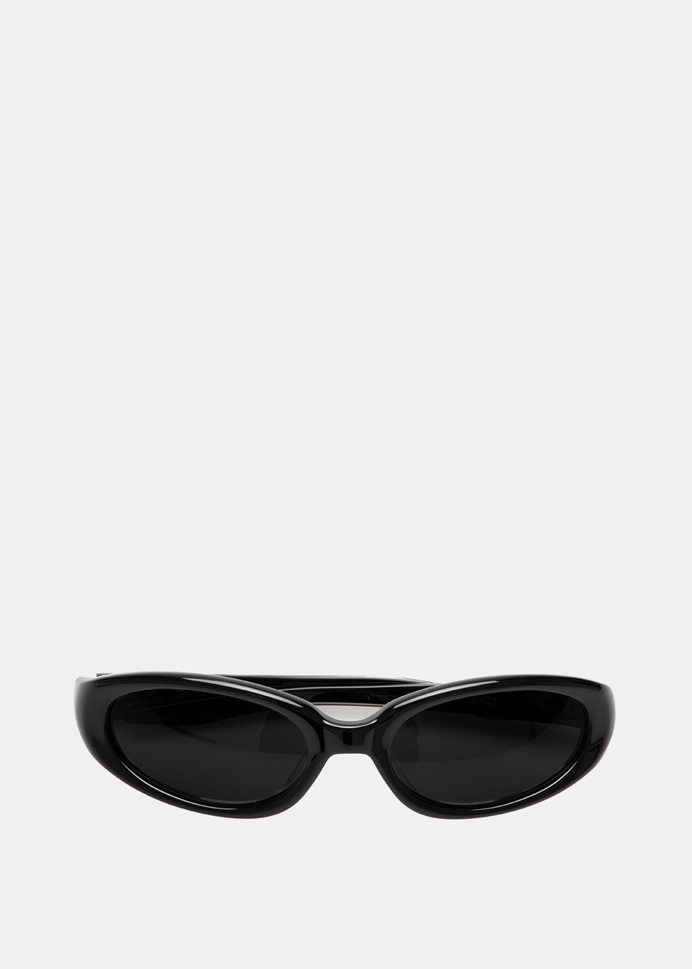 Monde 01 sunglasses from Gentle Monster's 2025 Collection. This piece features curved oval sunglasses in black acetate.