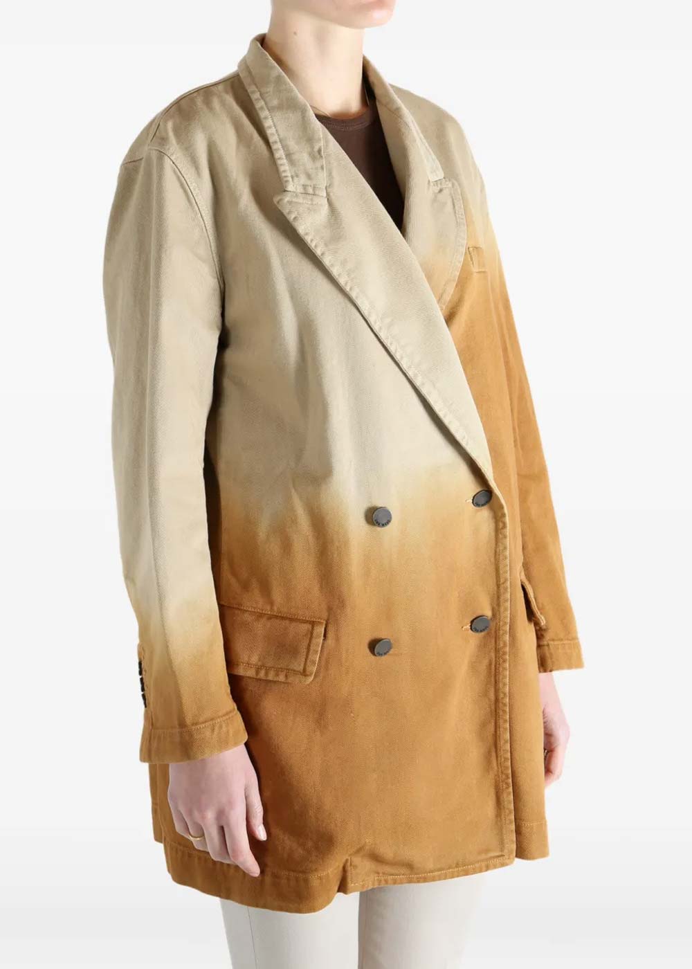 Kort double-breasted blazer in camel brown.