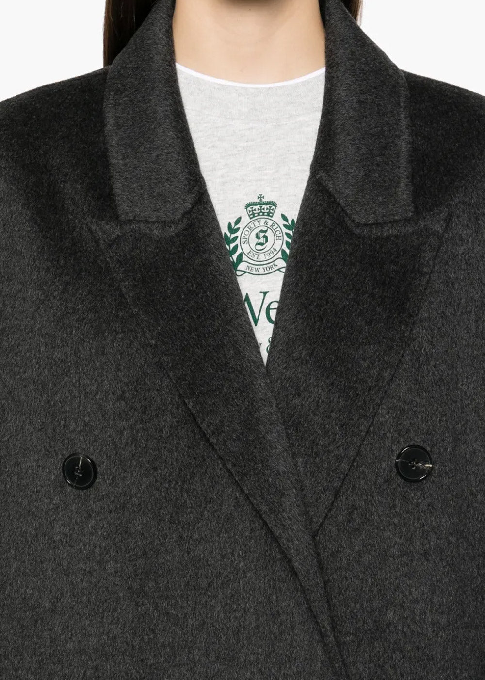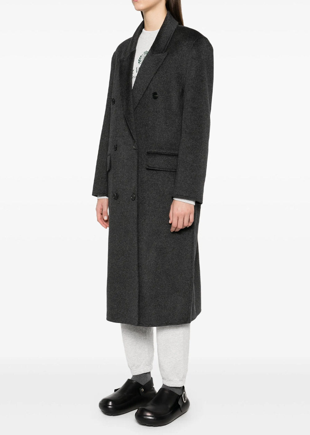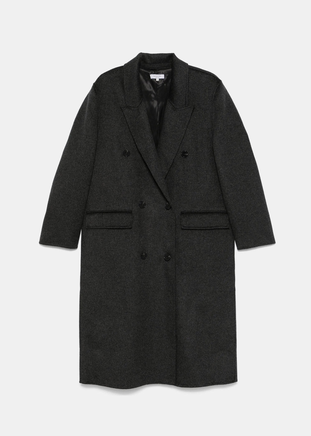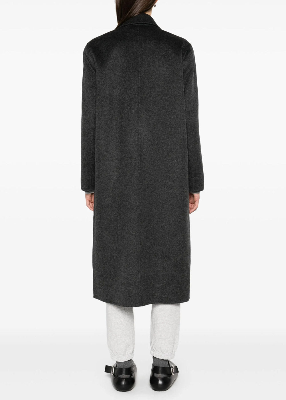 Cashmere coat in anthracite grey.