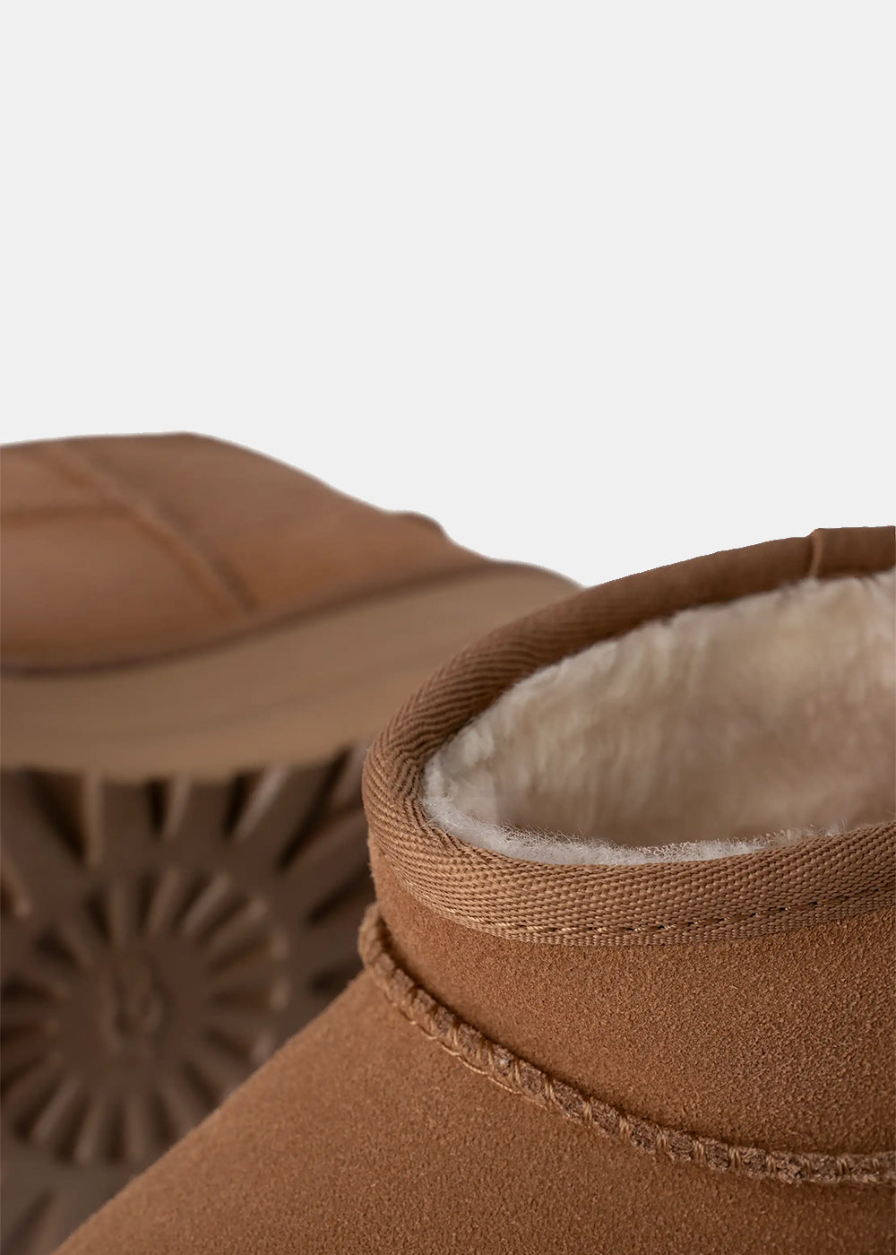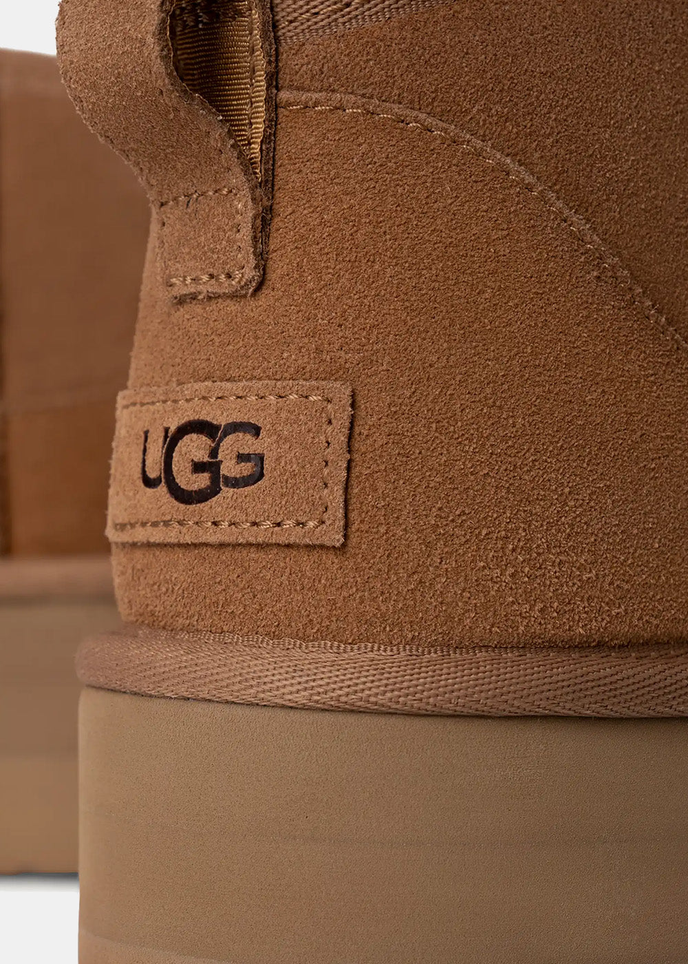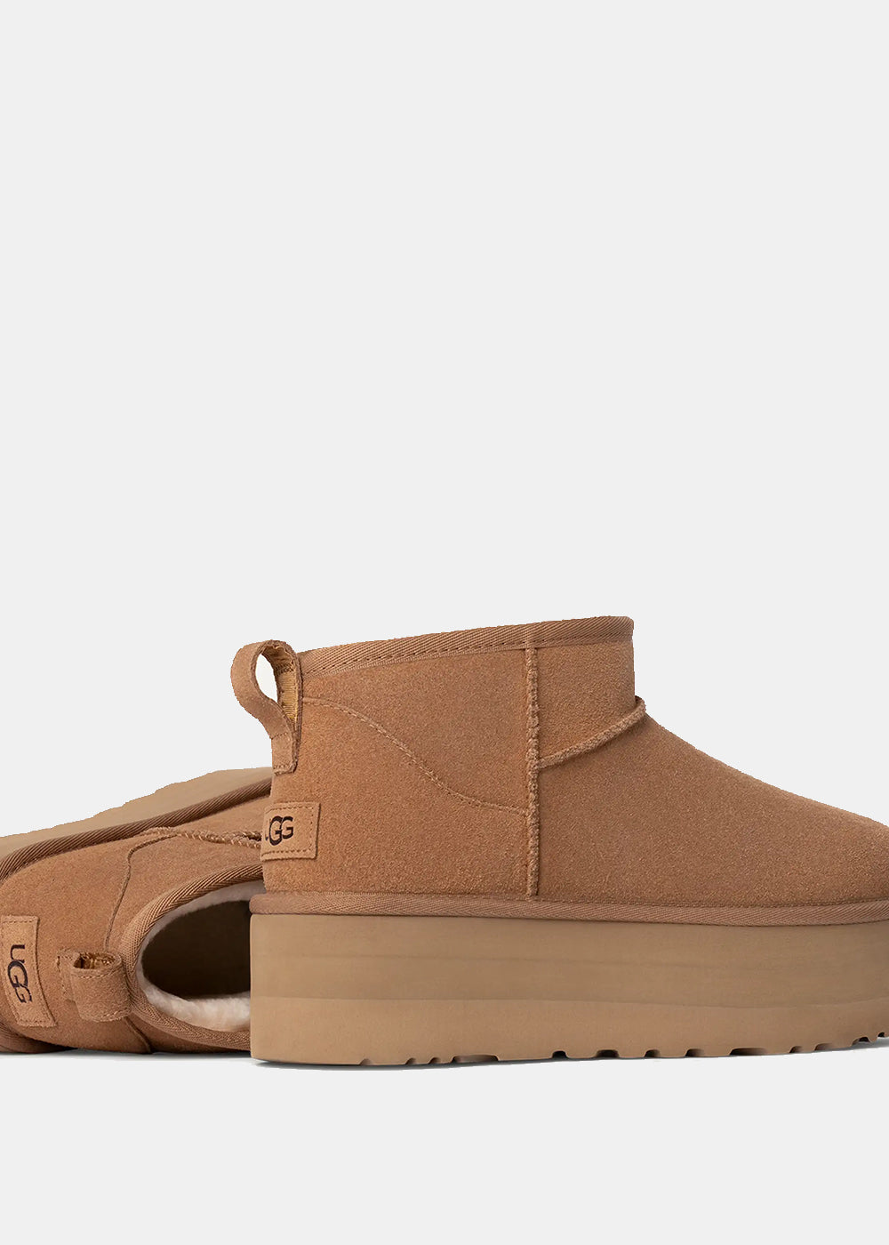 The Classic Ultra Mini Platform boot from UGG Australia is a modern interpretation of UGG's icon. The Ultra Mini reaches new heights with a leg-lengthening 2 inch platform. Offering a bolder look than ever before, it's made with the same rich suede as the original, plus UGG's UGGplush wool blend for signature softness.
