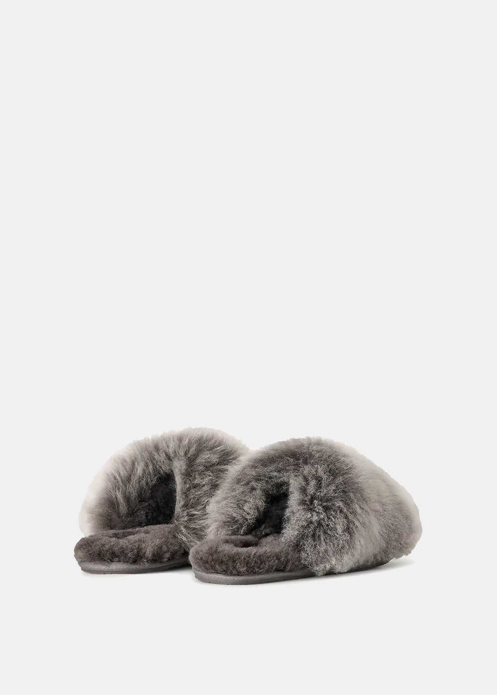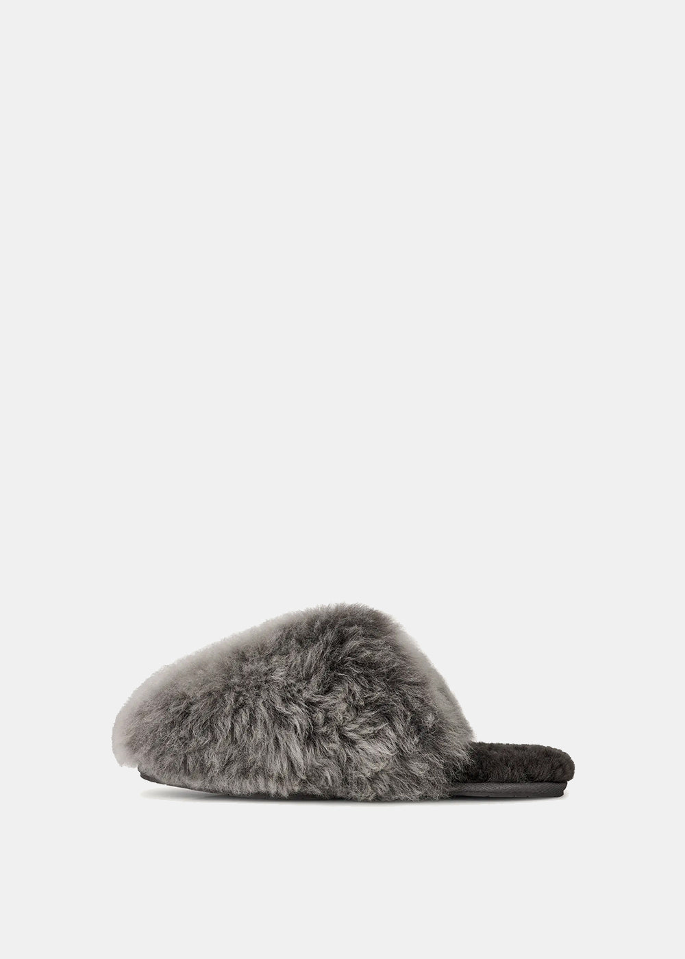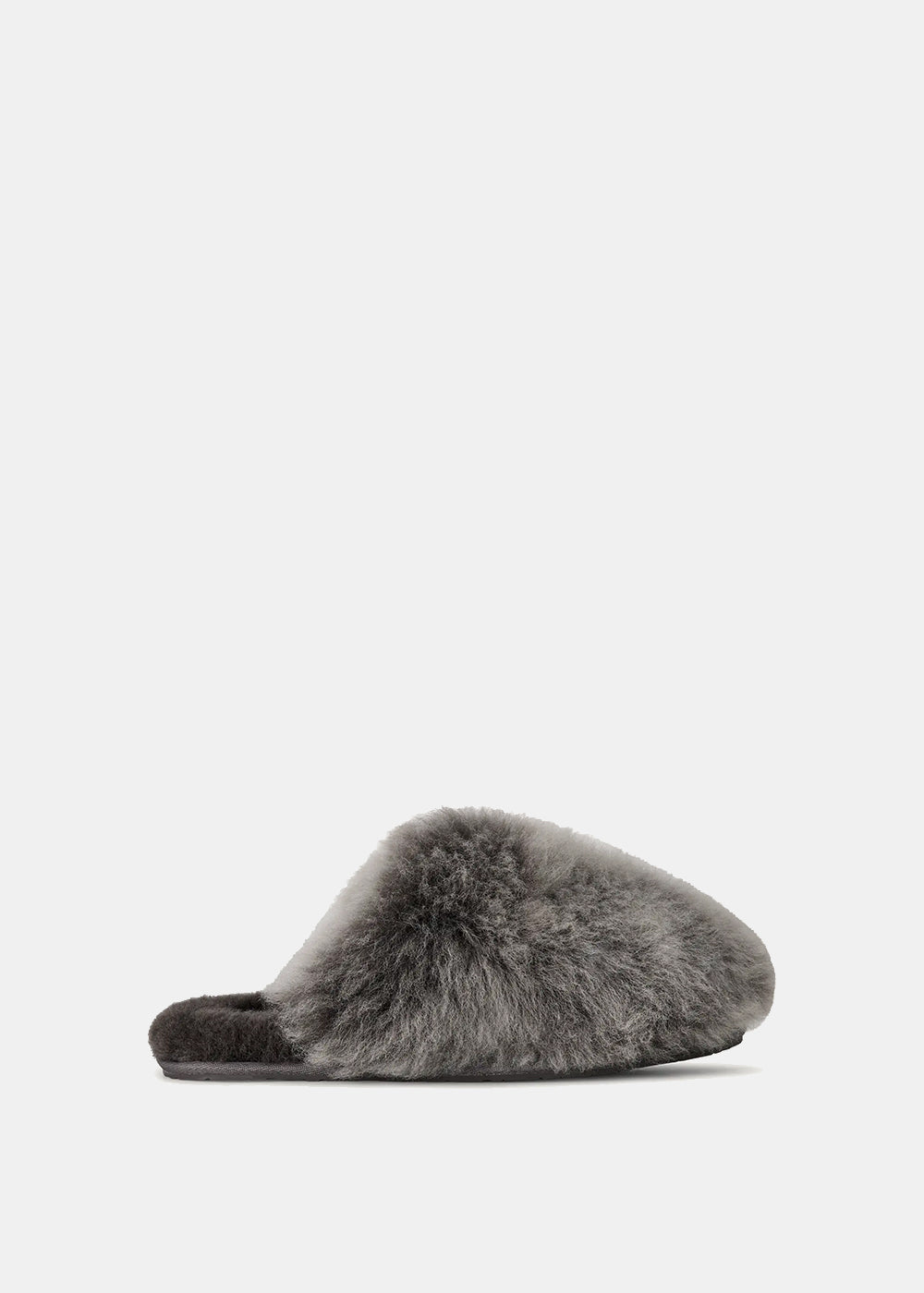 Fur-lined slippers in charcoal.