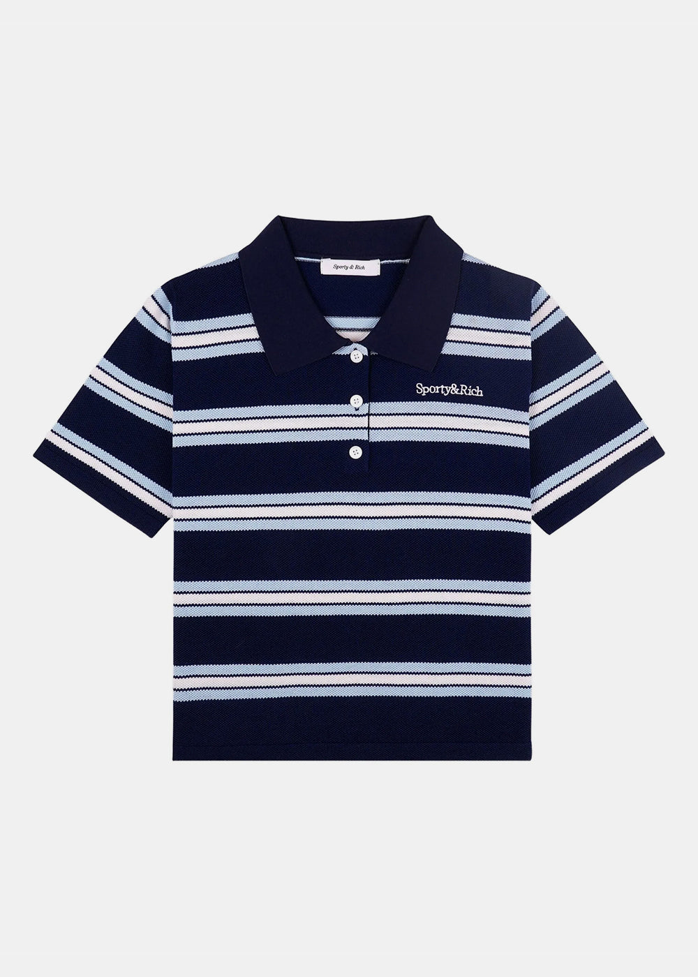 Dark Navy Serif Logo Silk Pique Cropped Polo