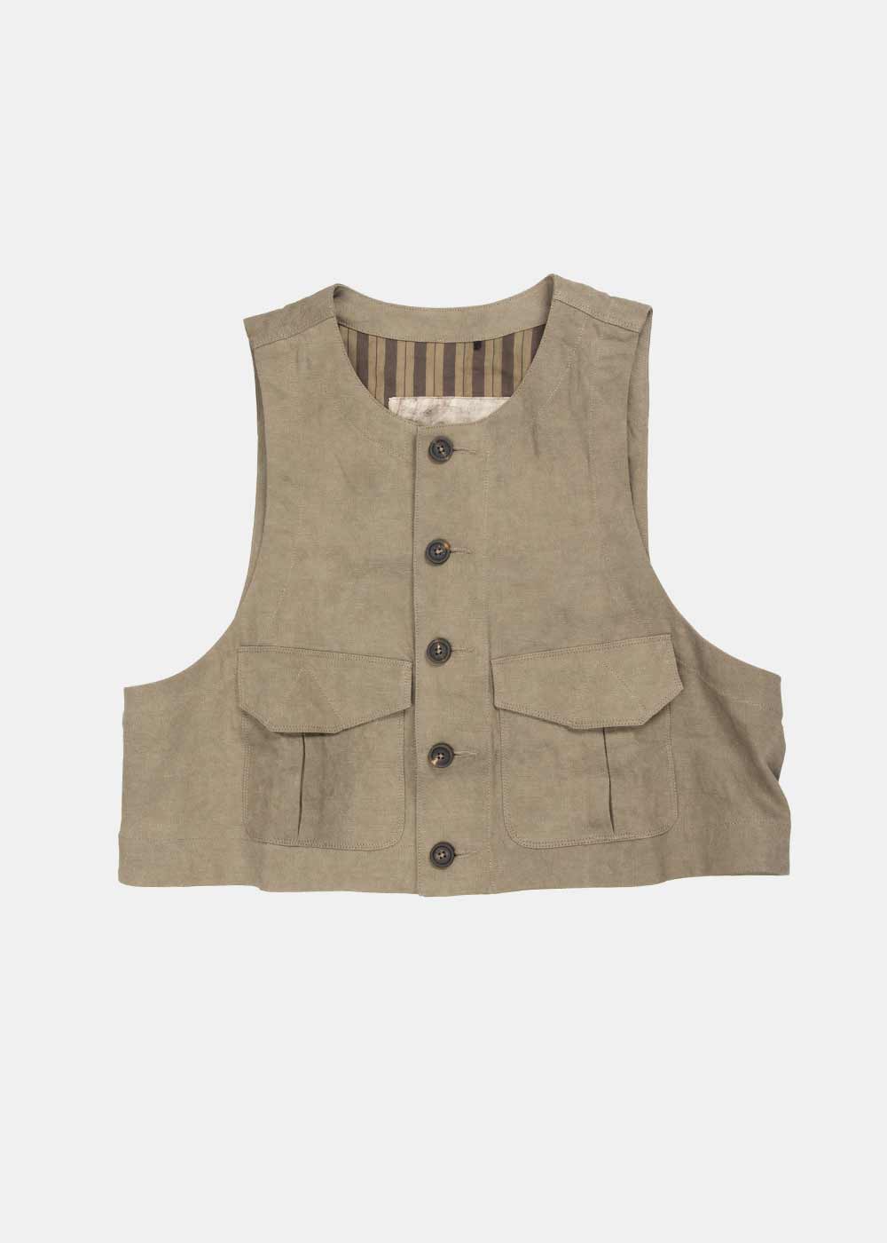 Linen blend collarless waistcoat in grey.