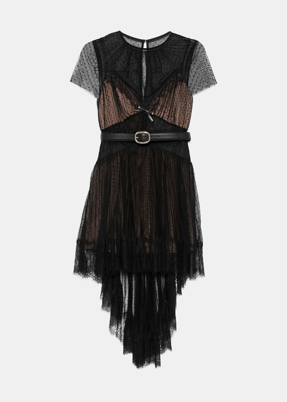 Polyester dot mesh mini dress in black.