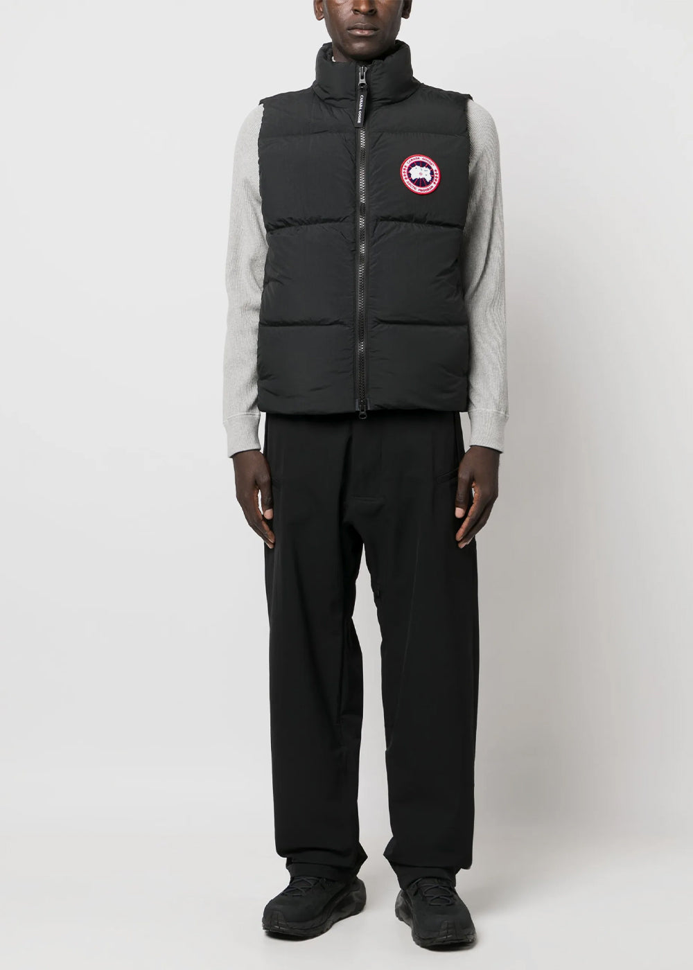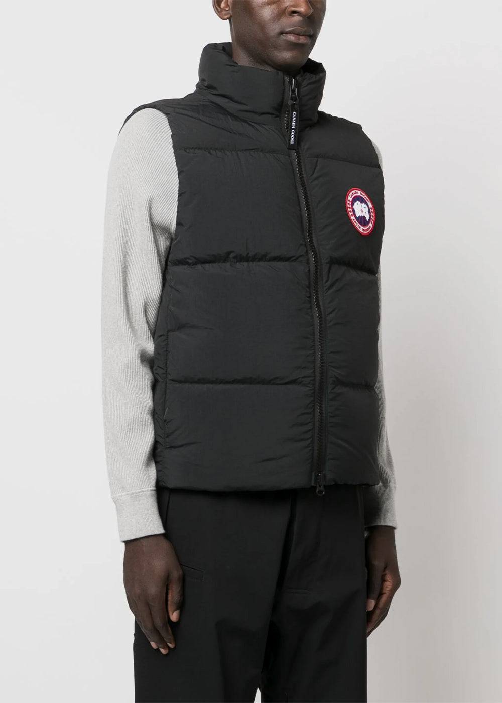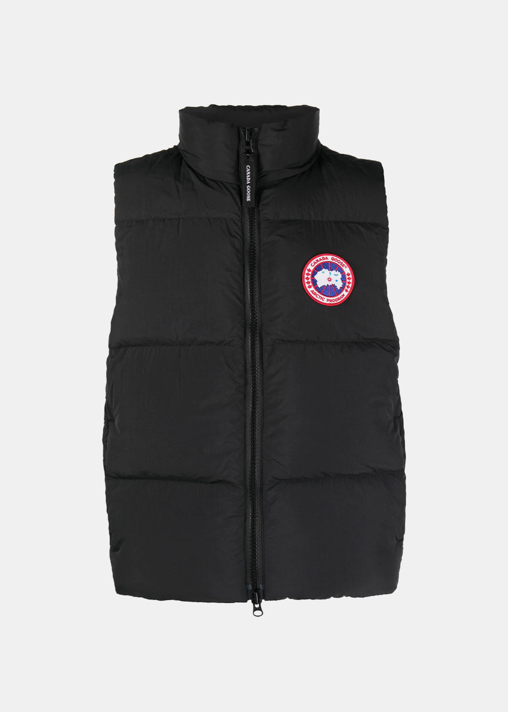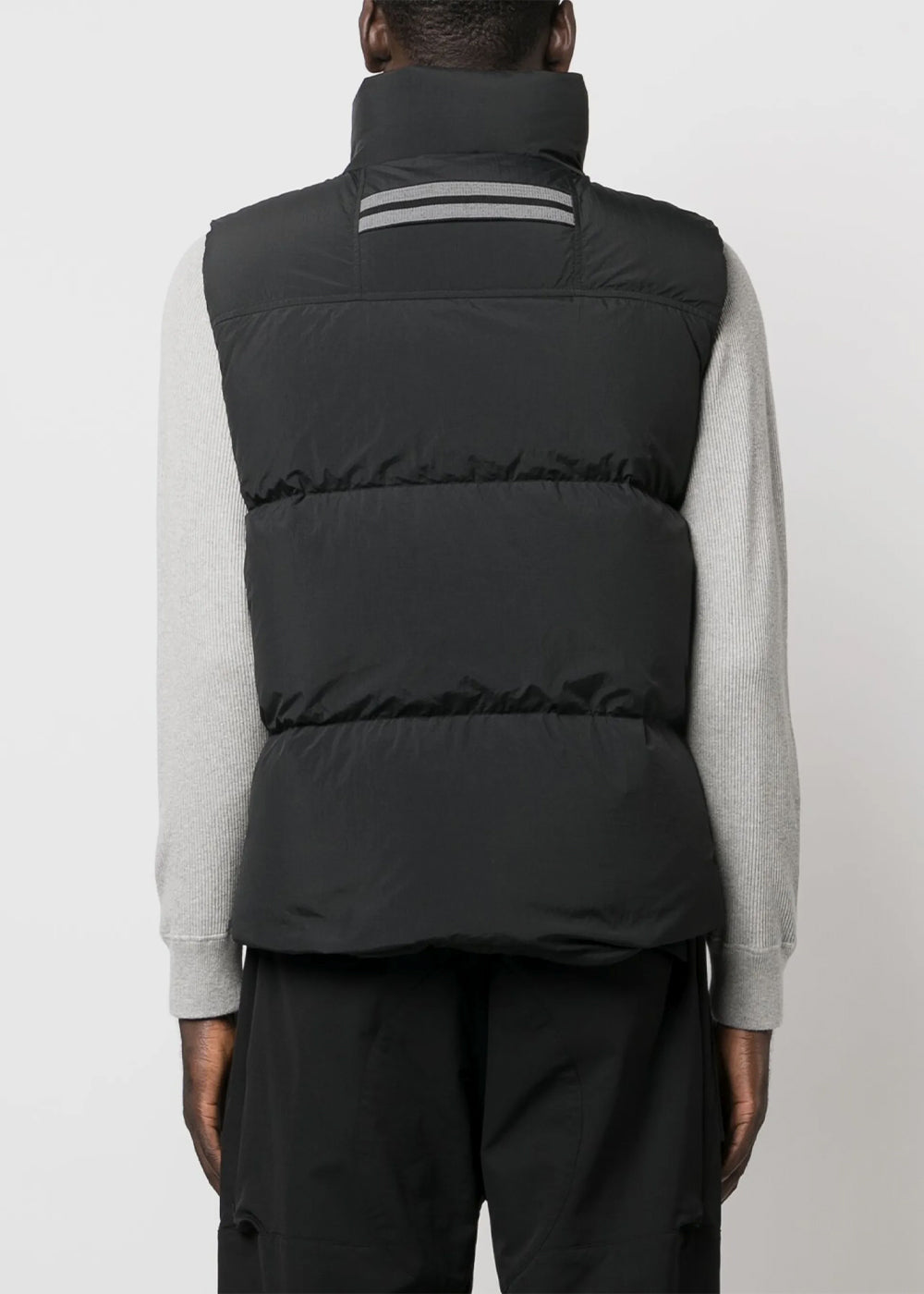 Duck down puffer vest in black.