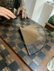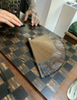 Natural wood plate in black and brown marble-pattern check. Traditional Japanese craftsmanship. Comes with box.