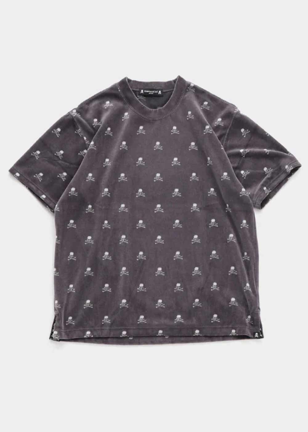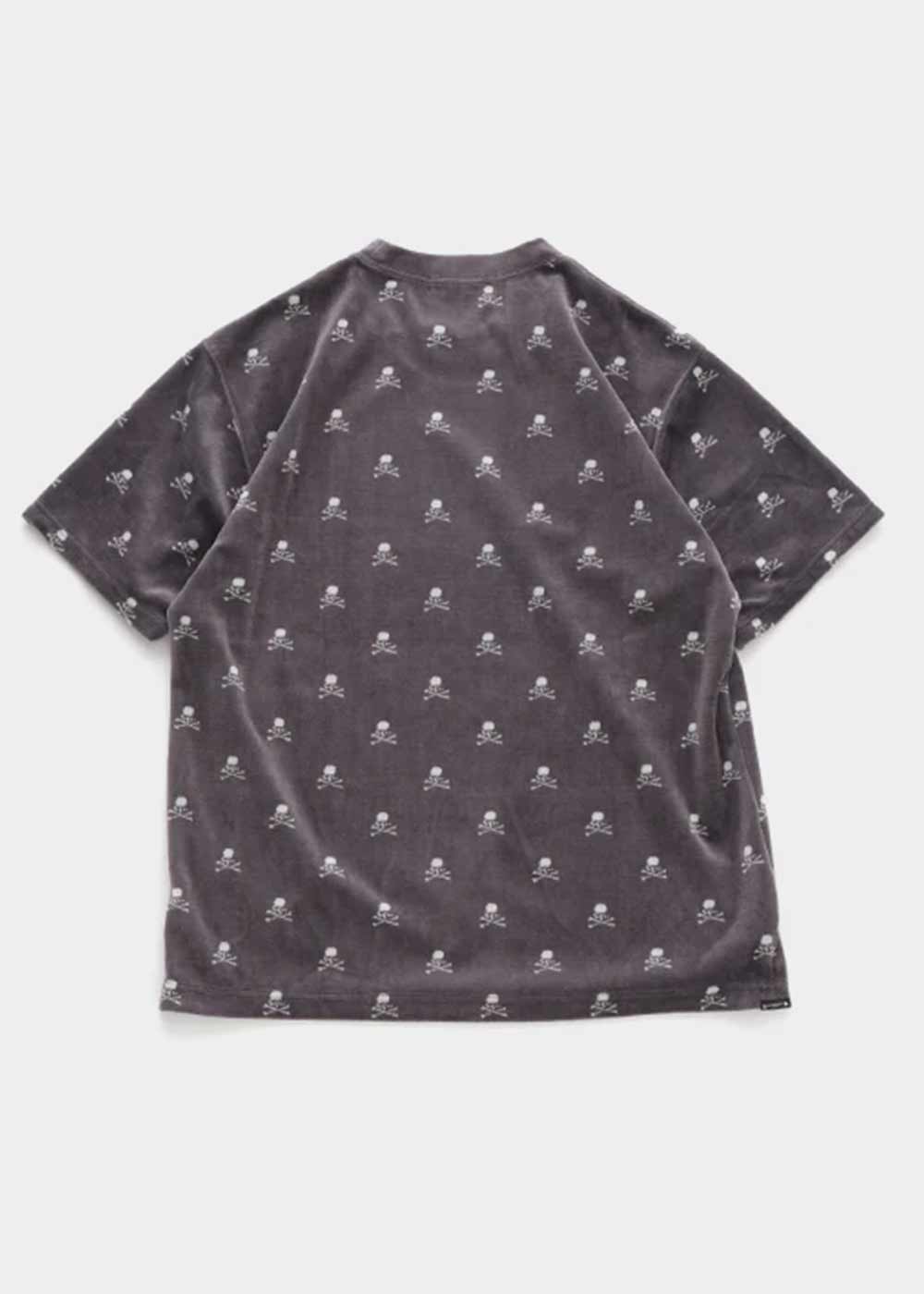 Cotton blend skull monogram velour t-shirt in charcoal.