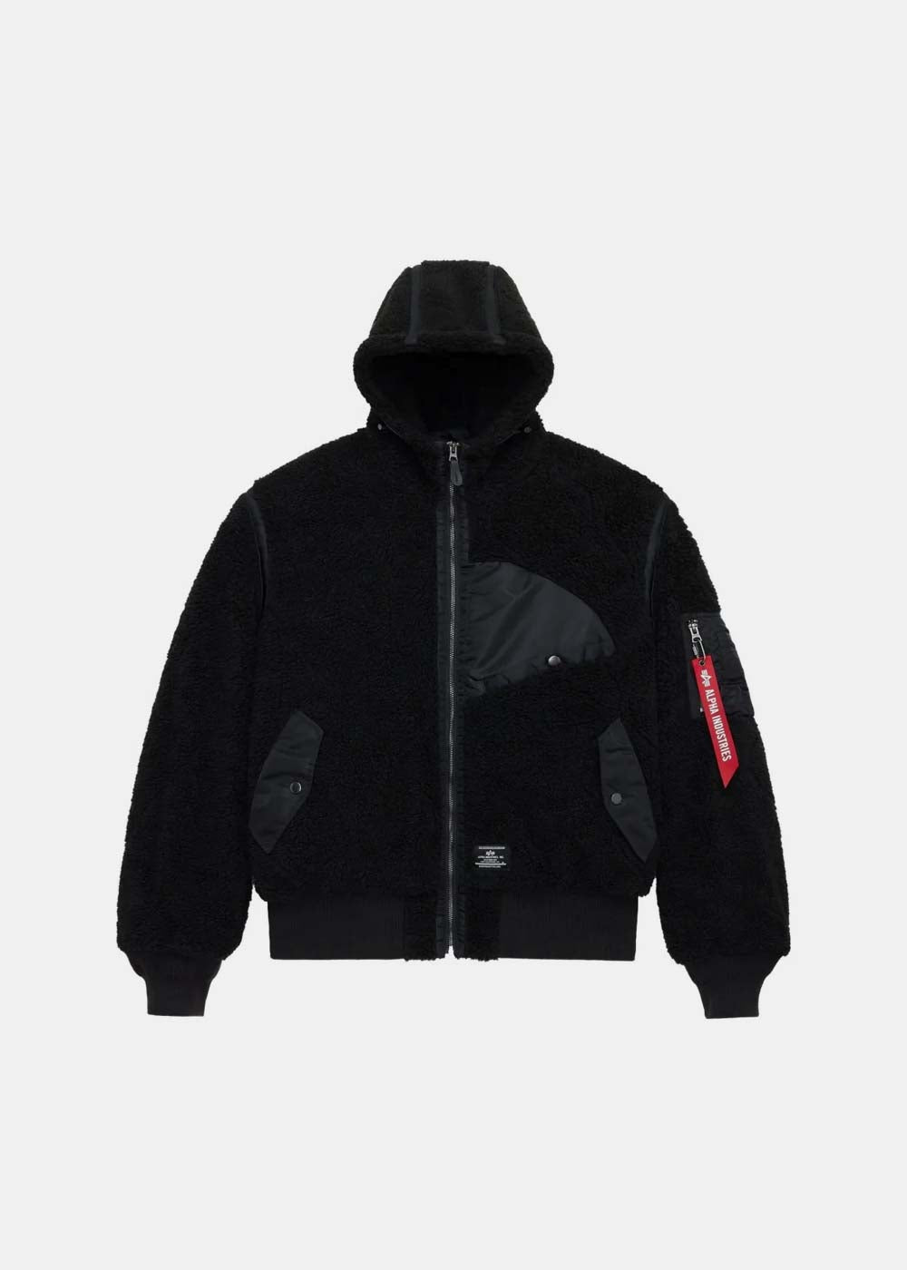 Black Long-Sleeve Sherpa Onion-Quilted Jacket