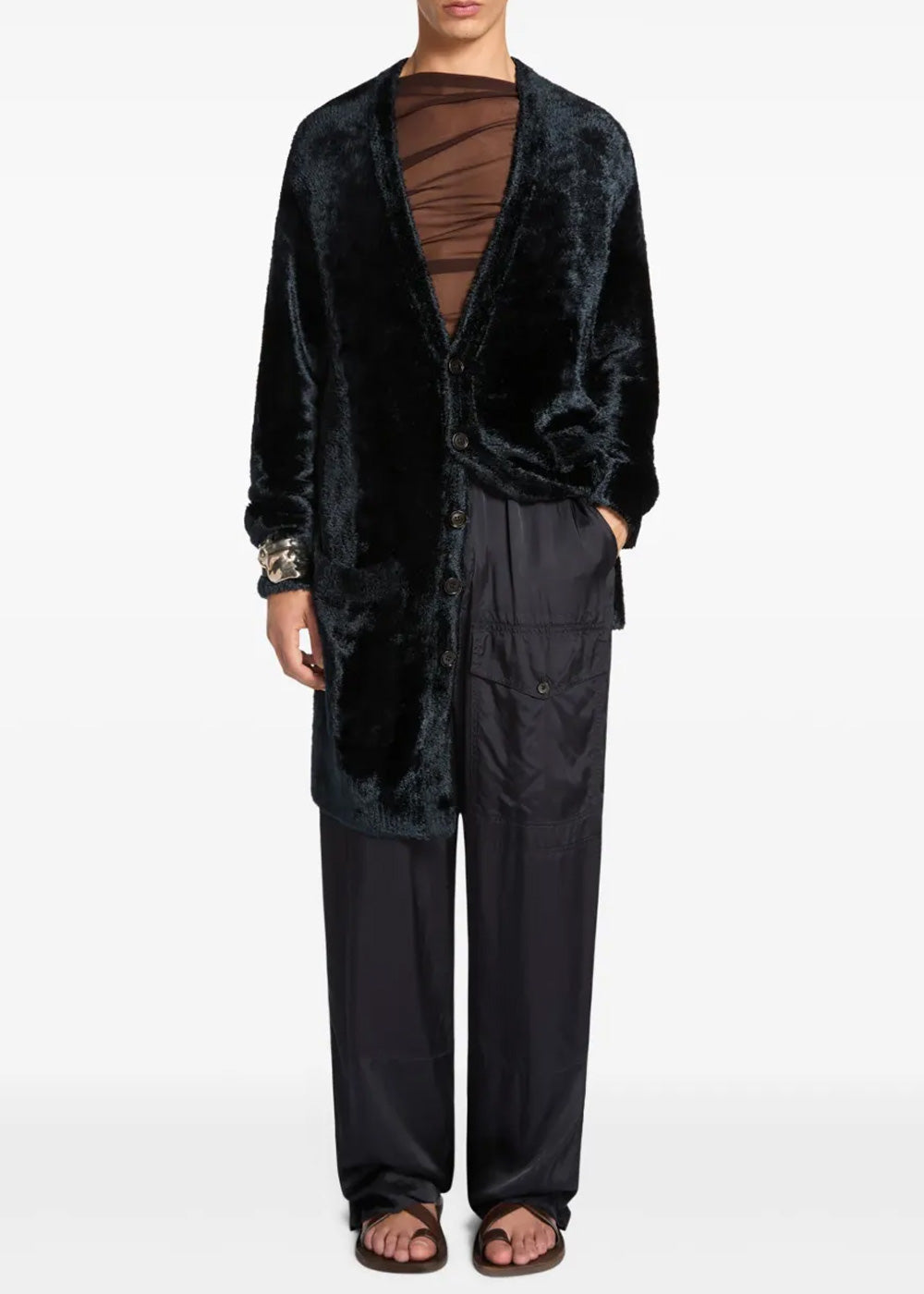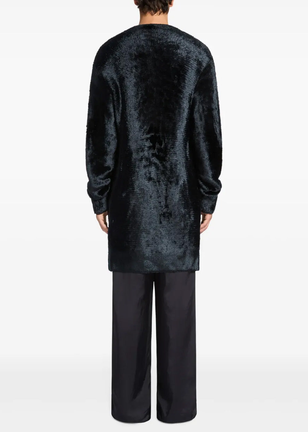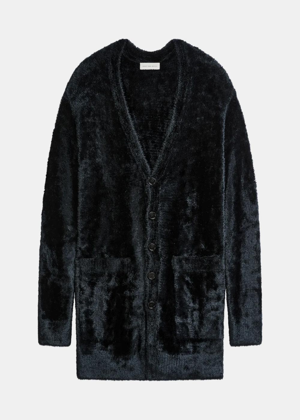 Long cardigan in navy with patch pockets, in a velvet viscose blend.