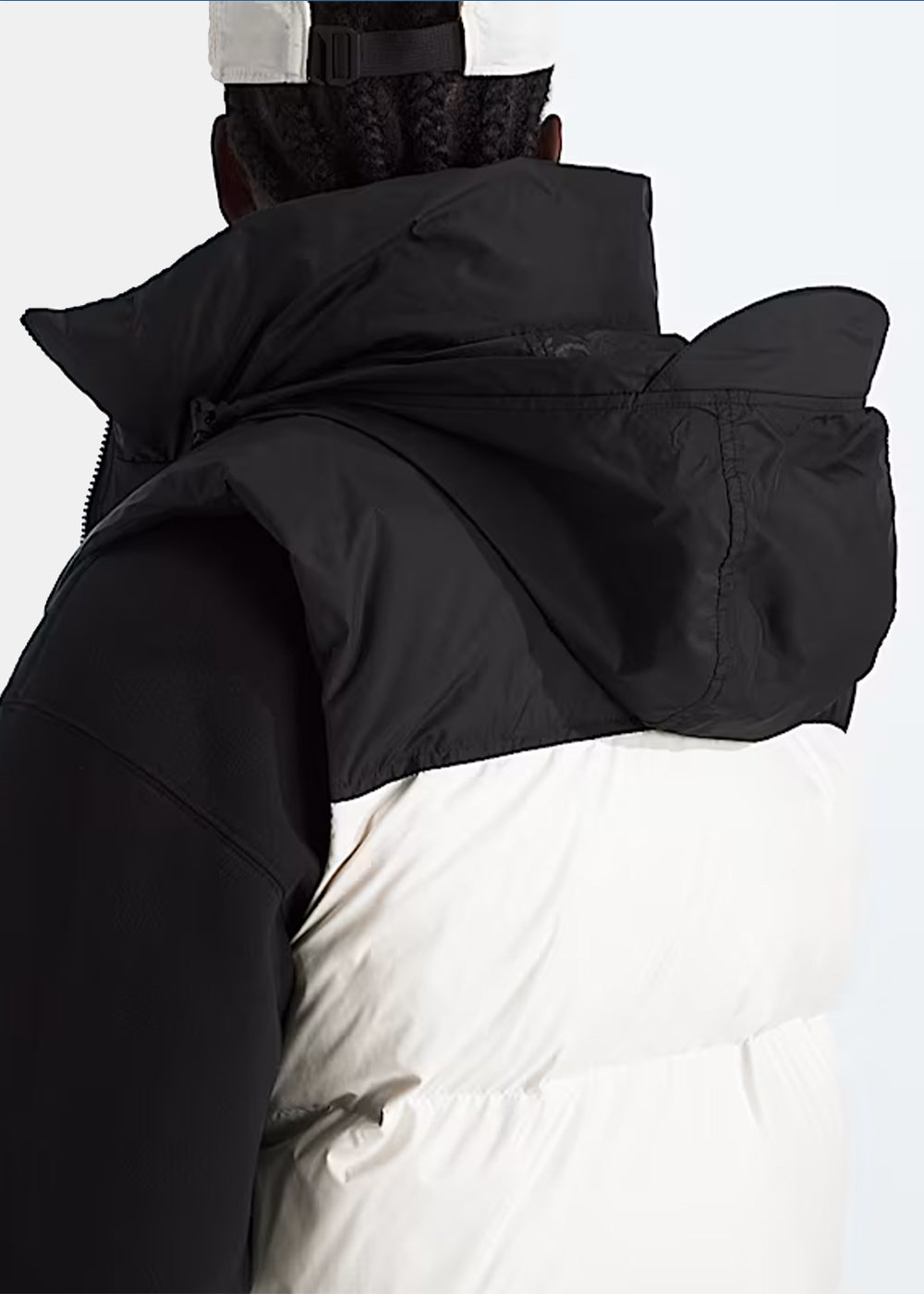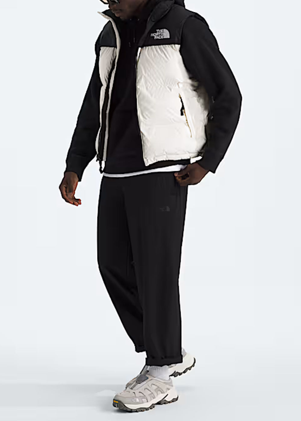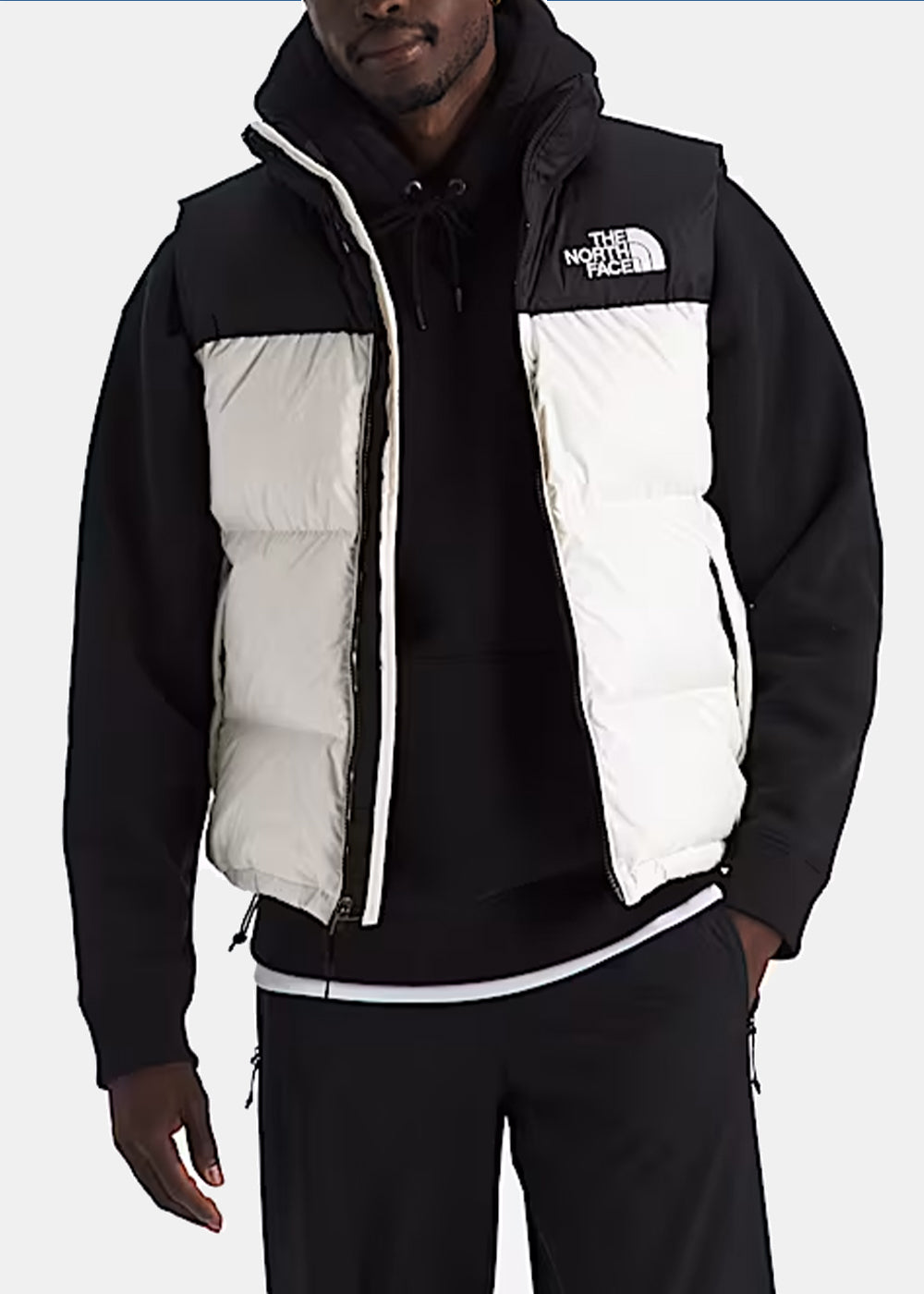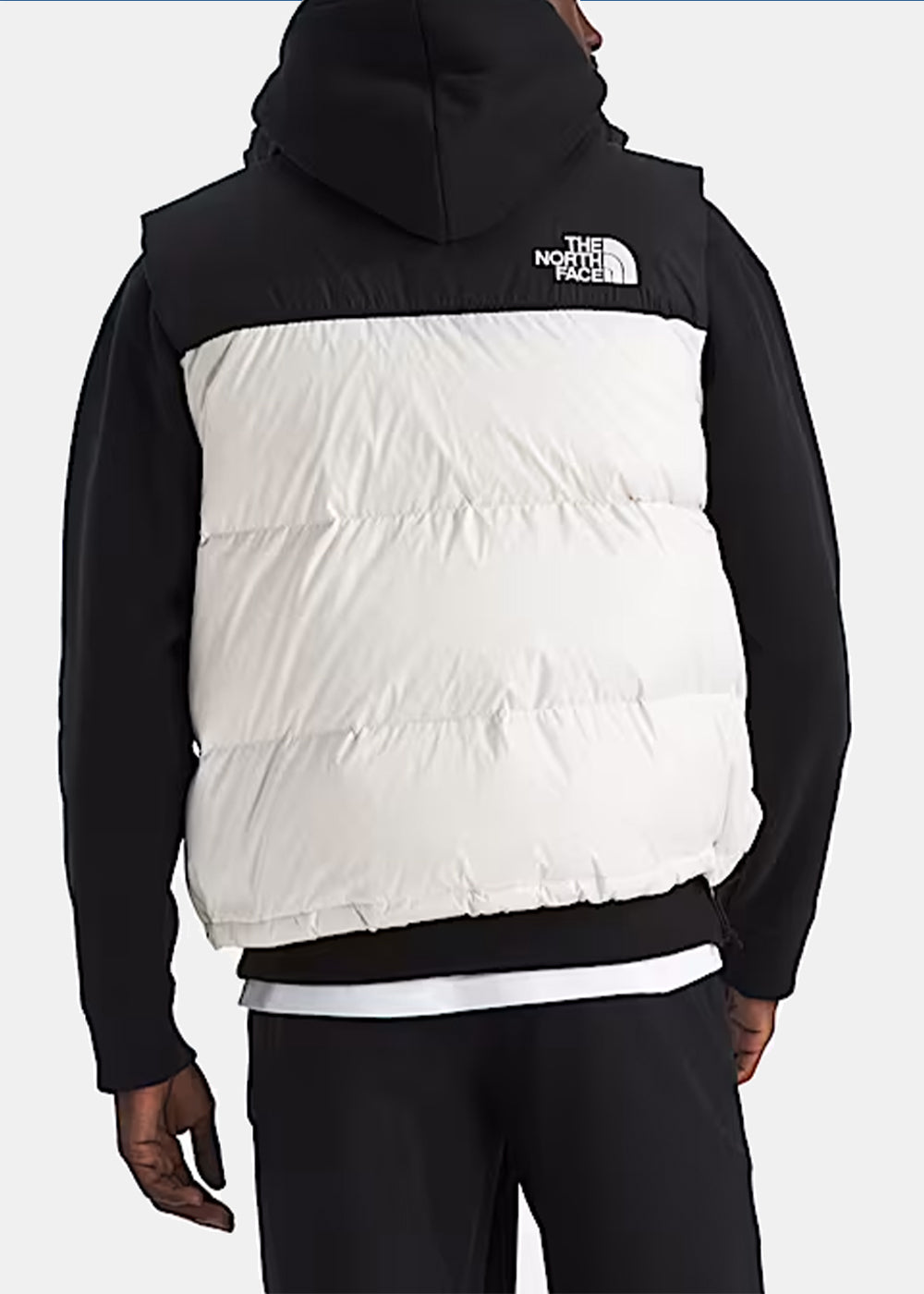 Recycled nylon 1996 Retro Nuptse vest in white and black.