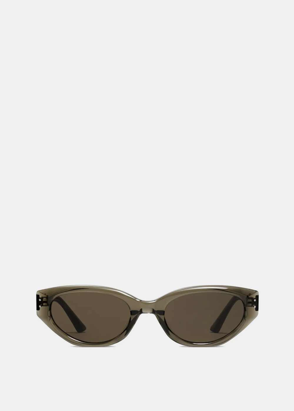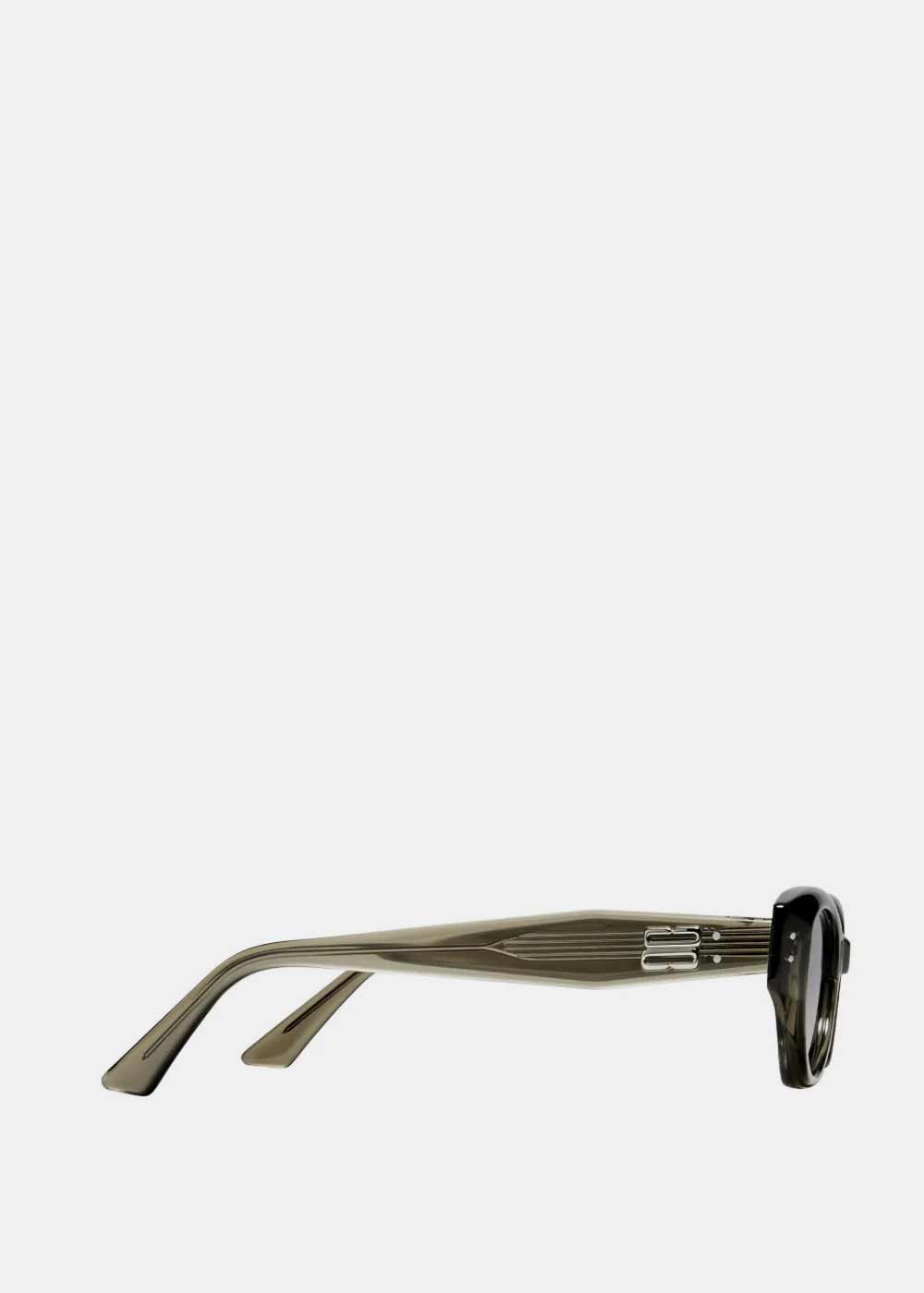 Rococo KC6 sunglasses features an alluring khaki frame, the iconic metal detail on the translucent temples adds a touch of sophistication to this piece.